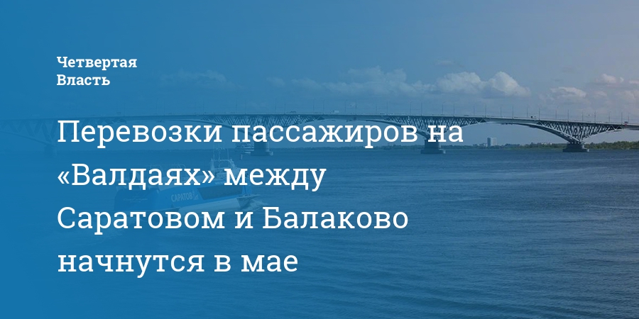 Перевозки пассажиров по Волге на судах на подводных крыльях типа «Валдай» между Саратовом и Балаково начнутся 1 мая. Это следует из конкурсной документации, опубликованной на портале госзакупок.