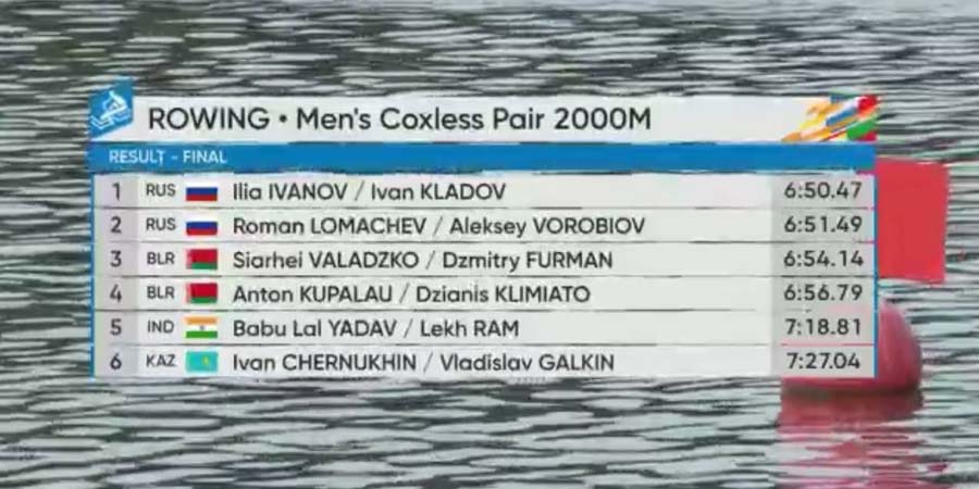 Первыми стали другие представители России Илья Иванов/Иван Кладов - 6.50,478, замкнули призовую тройку белорусы Сергей Володько/Дмитрий Фурман - 6.54,141.