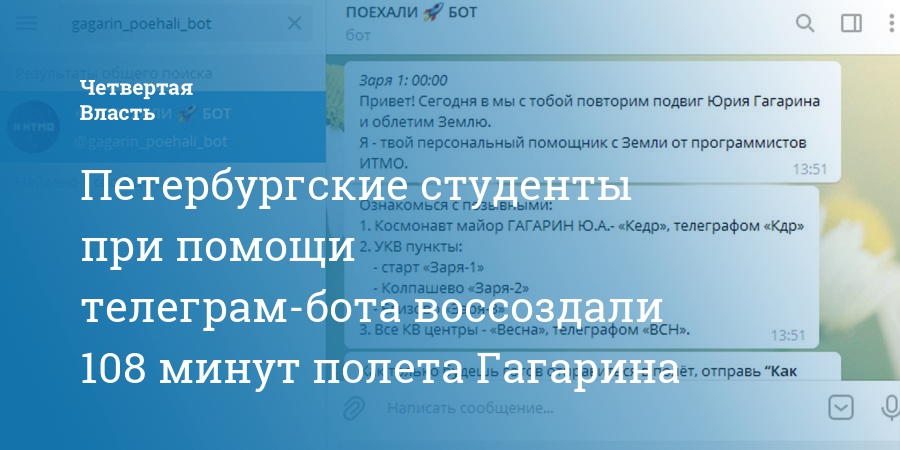 Петербургские студенты при помощи телеграм-бота воссоздали 108 минут полета Гагарина