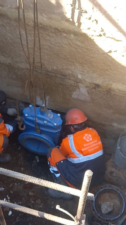 На текущий момент выполнен демонтаж старой запорной арматуры. Специалисты приступили к монтажу новых задвижек. Всего в ходе проведения работ планируется заменить 3 единицы различного диаметра (от d100 мм до d300 мм) и один пожарный гидрант.
