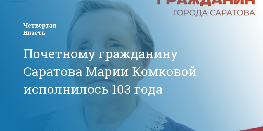 Сегодня, 7 апреля, 103-й день рождения отмечает почетный гражданин города Саратова Мария Комкова. Об этом сообщает пресс-служба городской администрации.