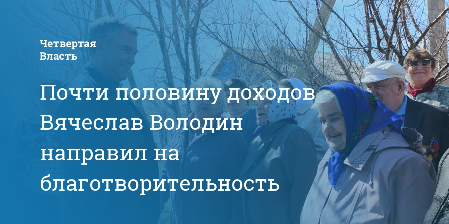 Отметим, что Володин традиционно ежегодно направляет до половины своих доходов на благотворительные проекты. В их числе инфраструктурные проекты на территории Саратовской области. Например, в прошлом году он направил на благотворительность почти 35 млн рублей (43% своих доходов).