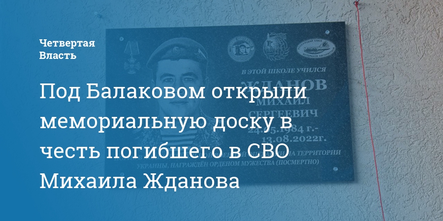 Сегодня, 1 февраля, в Балаковском районе Саратовской области открыли мемориальную доску в честь погибшего в ходе специальной военной операции на Украине Михаила Жданова. Об этом сообщил глава района Сергей Грачев.