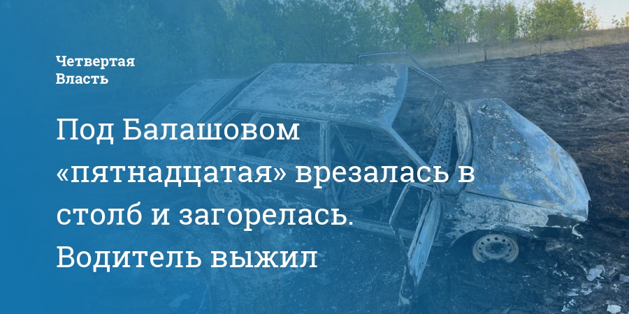 Под Балашовом «пятнадцатая» врезалась в столб и загорелась. Водитель выжил