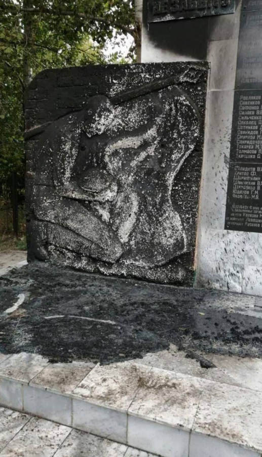 Как видно на фото, пламя было достаточно сильное, а памятник серьезно пострадал.
