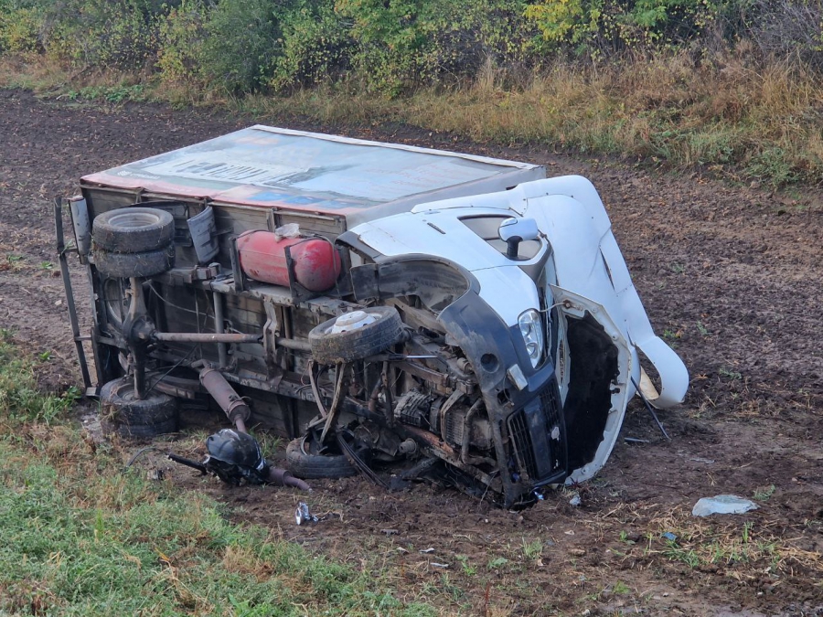 Под Энгельсом «ГАЗель» опрокинулась в кювет после столкновения с кроссовером