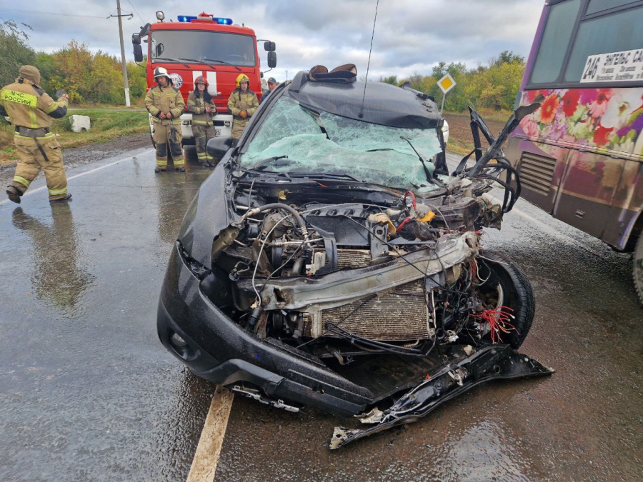 Вызов в дежурную часть об аварии на 417 км трассы Самара-пугачев-Энгельс-Волгоград поступил около 6.30. Здесь столкнулись иномарка «Рено Дастер» под управлением мужчины 1962 г.р. и «ГАЗ-3737», за рулем которой находился шофер 1996 г.р. От удара у «Рено» разбило переднюю часть, а грузовик вылетел в кювет и опрокинулся набок.