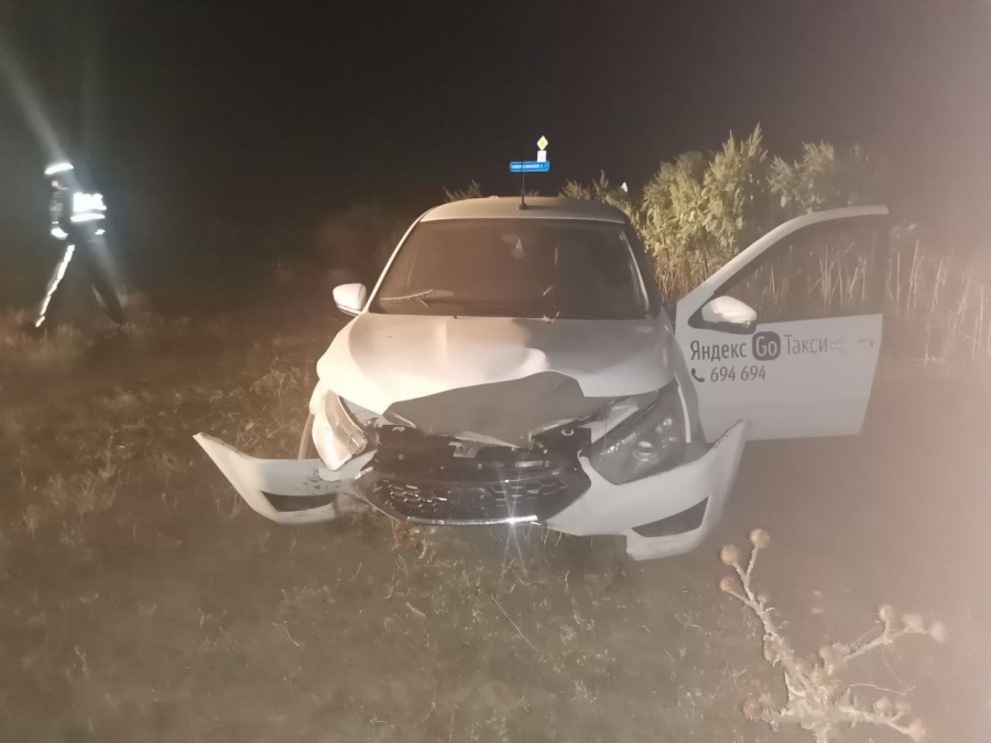 Дорожный инцидент случился в 23.10 в поселке Новопушкинское. Вблизи дома №20 по улице Заводской водитель 1982 г. р., управляя «Датсун» допустил съезд с дороги. Судя по фотографиям с места происшествия, машина принадлежит службе такси.