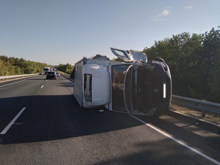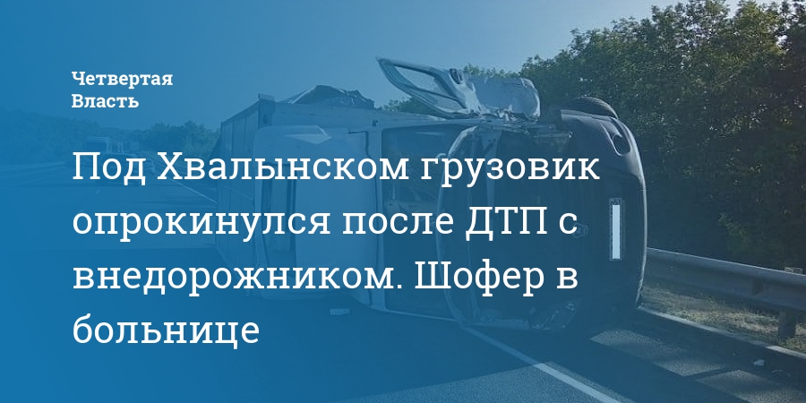Под Хвалынском грузовик опрокинулся после ДТП с внедорожником. Шофер в больнице