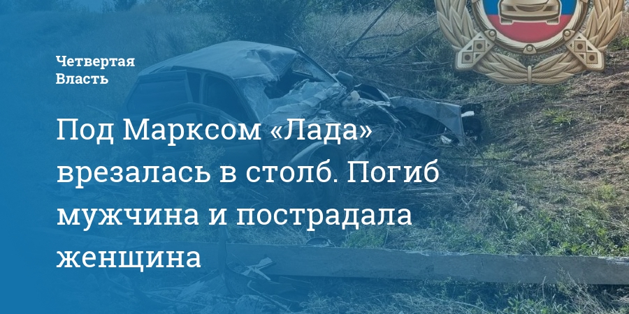 Под Марксом «Лада» врезалась в столб. Погиб мужчина и пострадала женщина