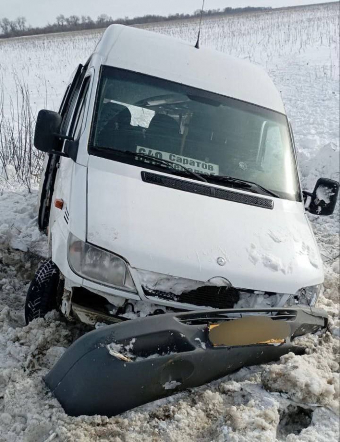 Под Марксом рейсовый автобус с 7 пассажирами съехал в кювет. Ранена женщина