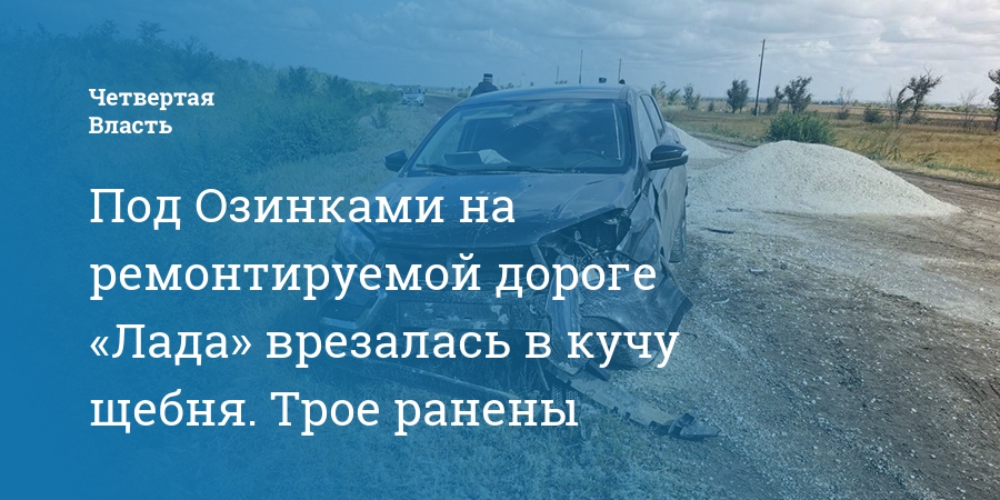 Под Озинками на ремонтируемой дороге «Лада» врезалась в кучу щебня. Трое ранены