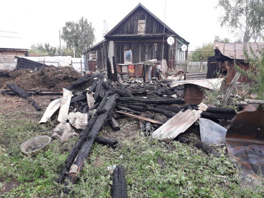 В результате возгорания полностью сгорел деревянный сарай размером 10 на 10 кв. метров, также в огне погибли сельскохозяйственные животные – годовалая телка, свиньи, утки, куры и гуси.