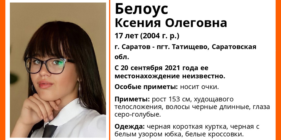 В Саратовской области сотрудникам полиции удалось связаться с 17-летней Ксенией Белоус, которая считается без вести пропавшей с 20 сентября. Как сообщили «Четвертой Власти» в пресс-службе ГУ МВД, пока девушку не видели, связь поддерживается через телефон.