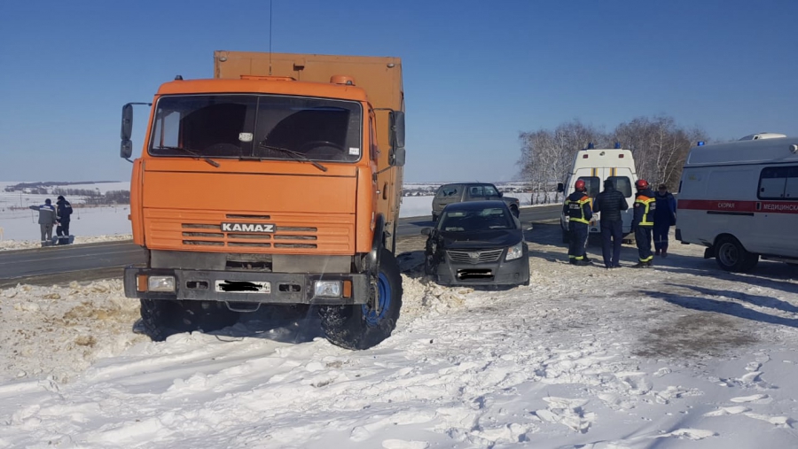 По предварительным данным ГИБДД, около 13.40 управлявший «КамАЗом» мужчина 1974 г.р., выезжая со второстепенной дороги, не уступил дорогу иномарке с водителем 1982 г.р. «Тойота» ехала по главной дороге со стороны Саратова.