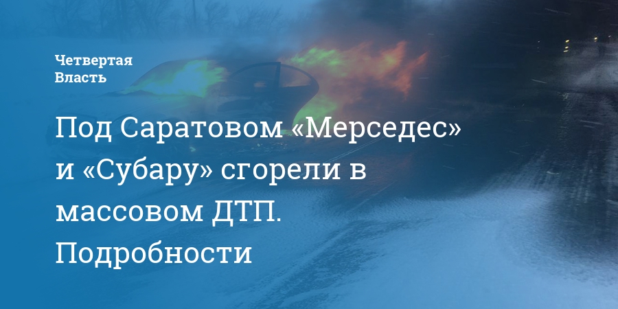 Под Саратовом «Мерседес» и «Субару» сгорели в массовом ДТП. Подробности