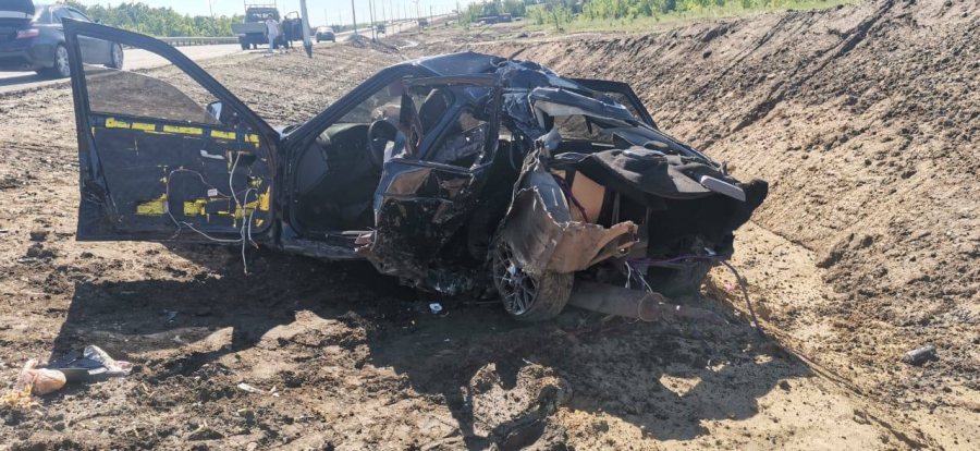 Под Саратовом парень на «Приоре» влетел в столб и опрокинулся в кювет