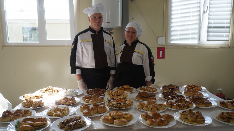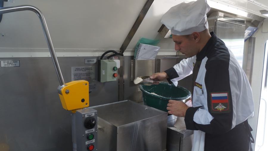 «Для приготовления личному составу было выделено одинаковое количество продуктов - пшеничная мука высшего сорта по 10 кг каждой команде, соль, сахар, яблоки, джем, повидло, яйца куриные, масло растительное и коровье, сыр, творог, молоко, изюм, лимон, курага, рыба, картофель, лук, грецкие орехи, дрожжи, ванилин, корица, кунжут, какао и шоколад», - рассказали в пресс-службе.