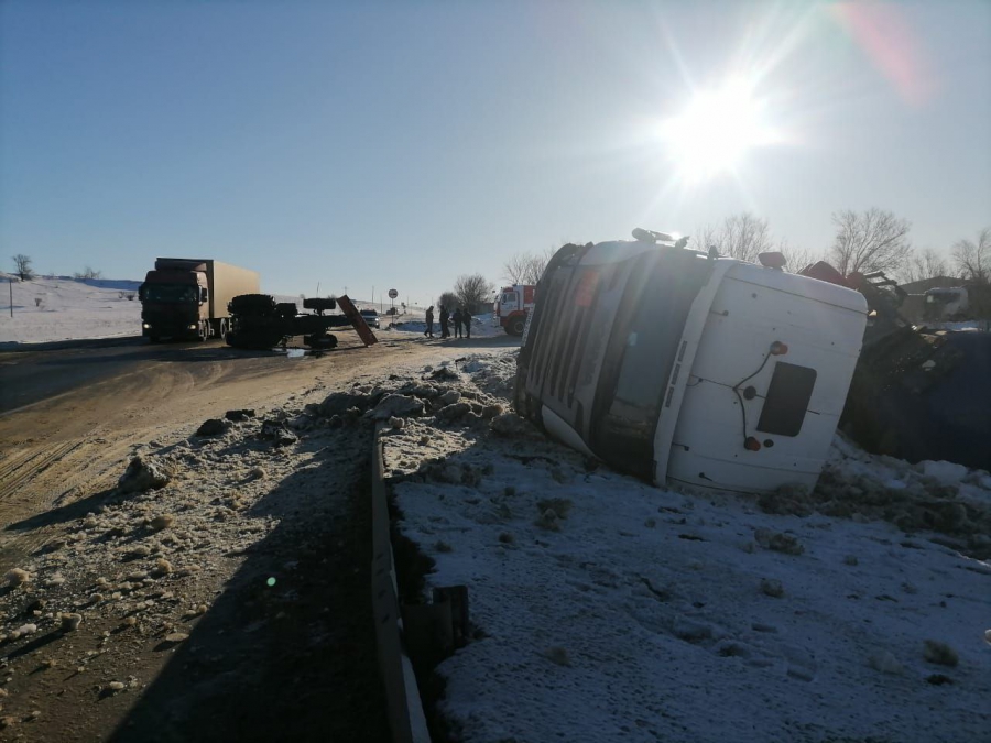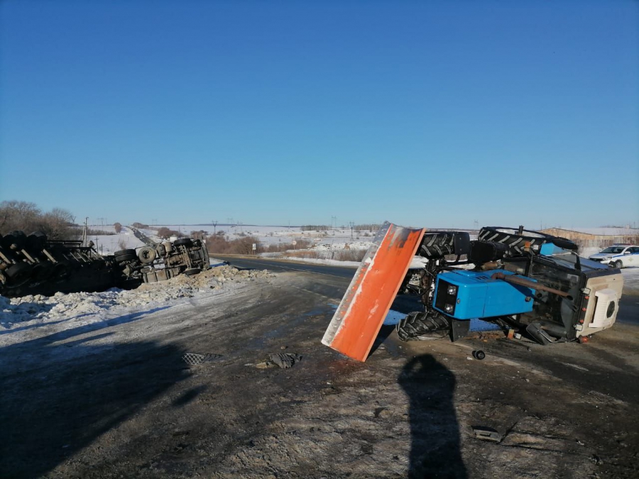 Авария случилась около 9.30 вблизи села Терса. По предварительным данным, водитель трактора «Белорус» мужчина 1982 г.р. столкнулся с транспортным средством «Скания» в составе полуприцепа, за рулем которого находился гражданин 1977 г.р. По кадрам с места происшествия видно, что от удара оба транспортных средства перевернулись на бок, причем фура оказалась в кювете.