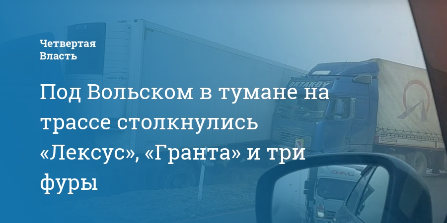 Под Вольском в тумане на трассе столкнулись «Лексус», «Гранта» и три фуры