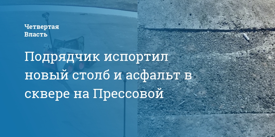 Подрядчик испортил новый столб и асфальт в сквере на Прессовой