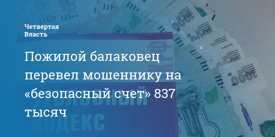 Пожилой балаковец перевел мошеннику на «безопасный счет» 837 тысяч