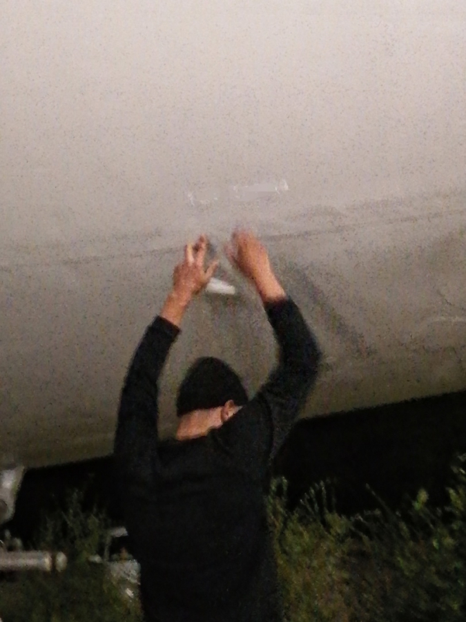 Ранее в группе «Саратовский споттинг» в соцсети «ВКонтакте» очевидец рассказал, что на площади героев Донбасса некий молодой человек в его присутствии наклеил на борт самолета наклейку с наименованием сообщества.