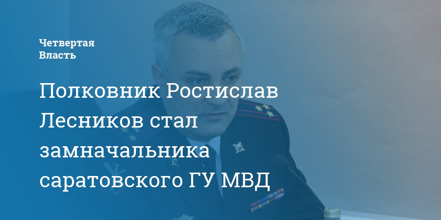 Заместителем начальника Главного управления МВД по Саратовской области стал полковник внутренней службы Ростислав Лесников. Как сообщили в пресс-службе ведомства, сегодня, 26 января, начальник главка генерал-майор полиции Николай Ситников представил его личному составу.
