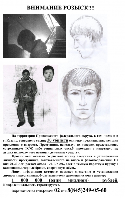 Преступления долгое время оставались нераскрытыми. Следствие обладало данными о генотипе преступника и отрабатывало разные версии, составлялся фоторобот. На причастность к совершению преступлений были проверены более 10 тысяч человек, проведено более 5 тысяч экспертных исследований. За информацию о нем полагалось вознаграждение в размере 1 млн рублей.