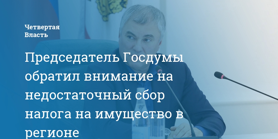 Председатель Госдумы обратил внимание на недостаточный сбор налога на имущество в регионе