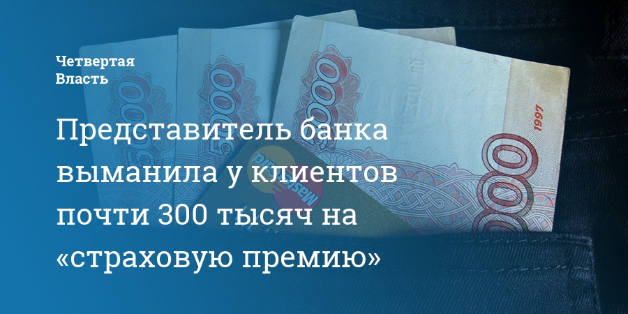 Представитель банка выманила у клиентов почти 300 тысяч на «страховую премию»