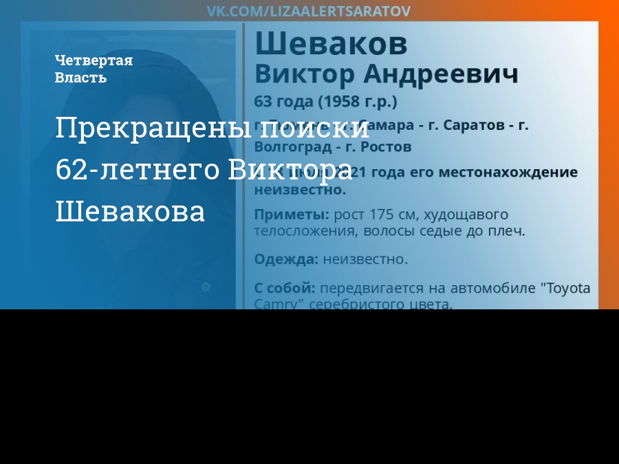 Известия о местонахождении пожилого мужчины перестали поступать 18 июля. Через 2 дня, 20 июля, волонтеры занялись его поисками от Тюмени до Ростова (в том числе и в Саратове). Как сообщалось, он передвигался на серебристой «Тойоте Камри».