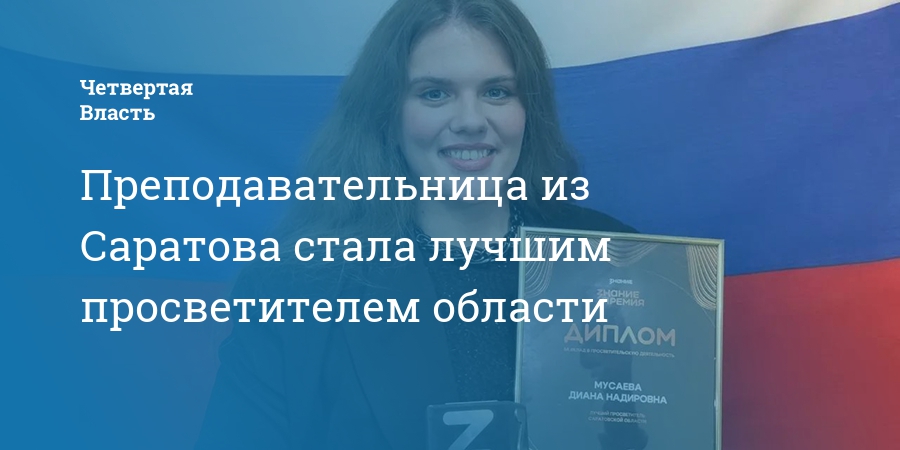 Преподавательница Саратовского Государственного университета имени Н.Г.Чернышевского Диана Мусаева стала победителем в конкурсе «Знание.Премия» в номинации «Лучший просветитель Саратовской области». Об этом сообщает министерство образования региона.