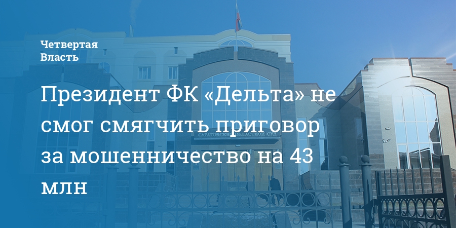 В Саратове бывший президент региональной общественной организации «Футбольный клуб «Дельта» Сергей Кормилицын и главный бухгалтер Ольга Спичникова не смогли обжаловать приговор по уголовному делу о мошенничестве. Соответствующее решение вынес Саратовский областной суд.