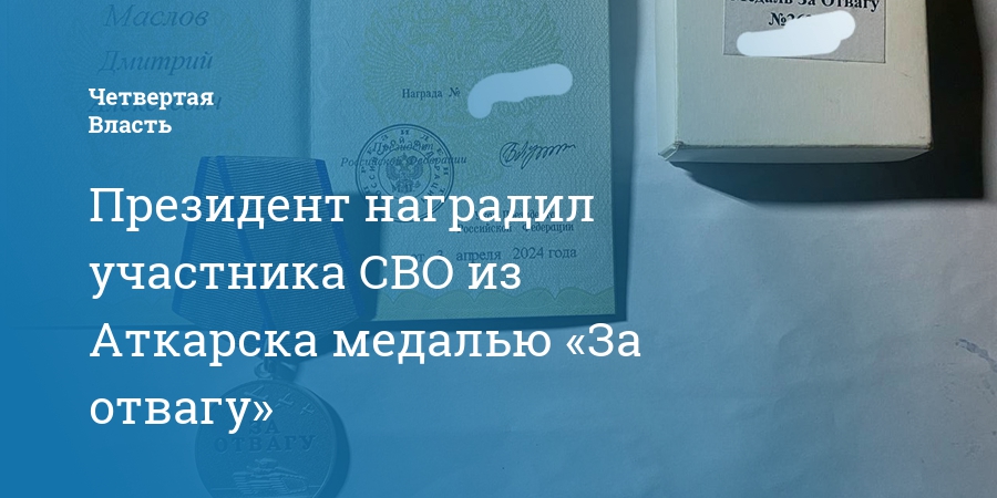 По указу президента РФ Владимира Путина награду присвоили мобилизованному Дмитрию Маслову. Чиновники подчеркнули, что аткарского воина отметили одним из самых высоких званий.