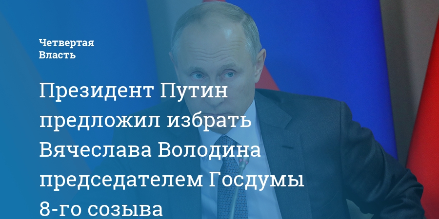 Президент Путин предложил избрать Вячеслава Володина председателем Госдумы 8-го созыва
