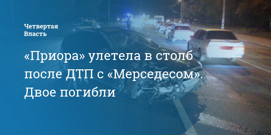 «Приора» улетела в столб после ДТП с «Мерседесом». Двое погибли