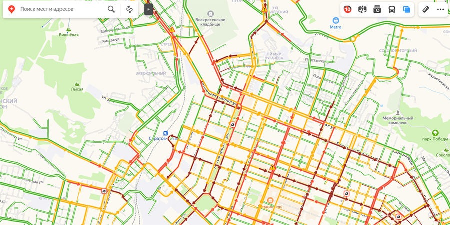 Сегодня, 25 февраля, под вечер пробки на дорогах достигли высшей отметки в 10 баллов. Об этом свидетельствует портал «Яндекс. Пробки».