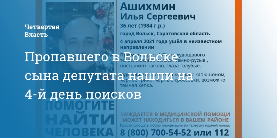 Отметим, по информации издания «Вольская неделя», пропавший является сыном депутата Совета муниципального образования Вольска Сергея Ашихмина.
