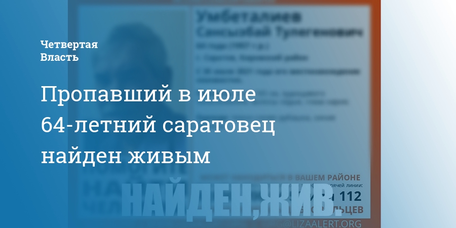 В Саратове прекращены поиски без вести пропавшего 64-летнего Сансызбая Умбеталиева. Как сообщили в поисково-спасательном отряде «Лиза Алерт», его удалось найти.