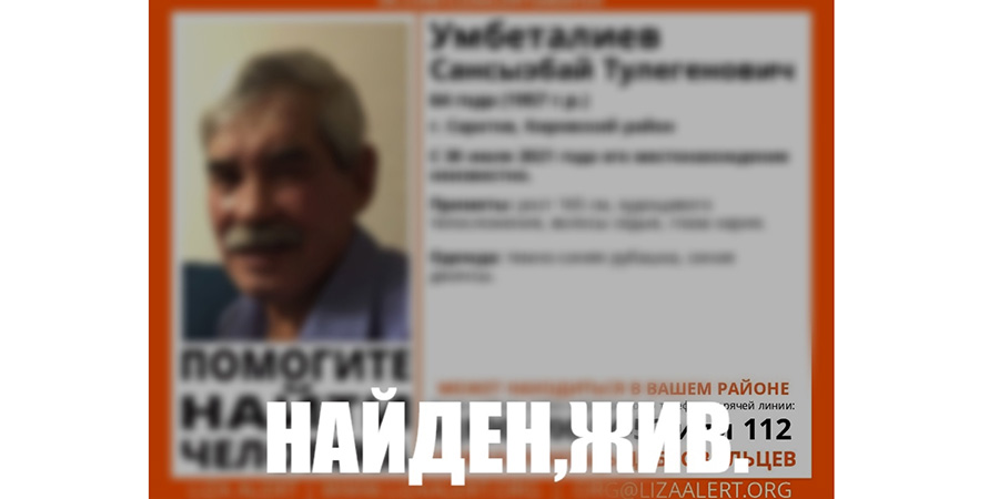 Напомним, Сансызбай Тулегенович ушел из дома в Кировском районе 30 июля, и с тех пор сведений о его местонахождении не имелось. Волонтеры подключились к поиску седовласого мужчины с 14 августа.