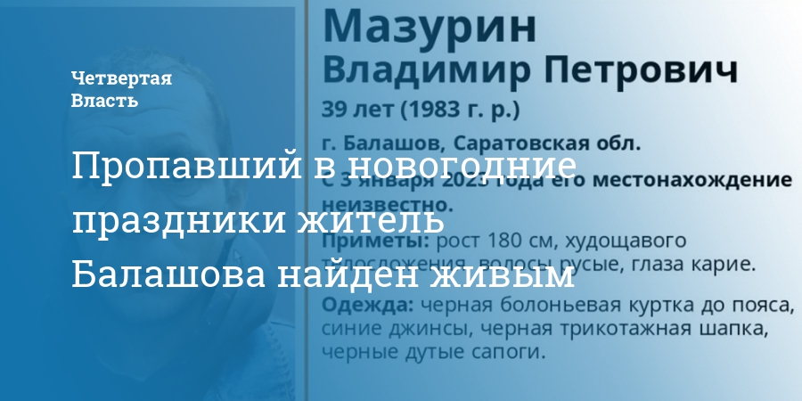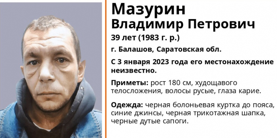 В Балашове Саратовской области нашли без вести пропавшего 39-летнего Владимира Мазурина. Об этом сегодня, 29 июня, сообщили в группе поискового отряда «Лиза Алерт» соцсети «ВК».