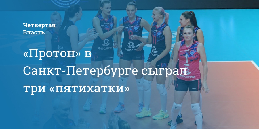 В матче с местной «Ленинградкой» «Протон» вел 2:0, но преимущество упустил - 2:3 (25:23, 25:22, 25:27, 23:25, 11:15). Двузначной результативностью у нашей команды отметились Анастасия Азанова - 29 очков, Екатерину Геращенкова - 23, Варвара Сергеева - 14, Инна Крук - 10.