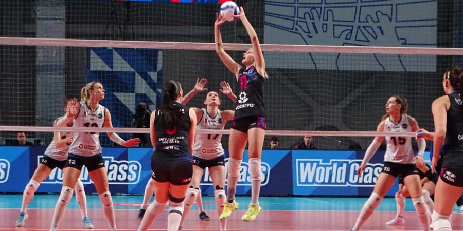 В первой партии саратовчанки владели инициативой, их преимущество достигало семи очков. При счете 24:19 они пропустили пять очков подряд, потом не реализовали еще три сет-бола и только с девятой попытки оформили победу - 29:27.