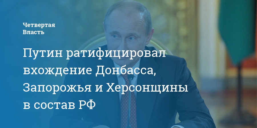 Путин ратифицировал вхождение Донбасса, Запорожья и Херсонщины в состав РФ