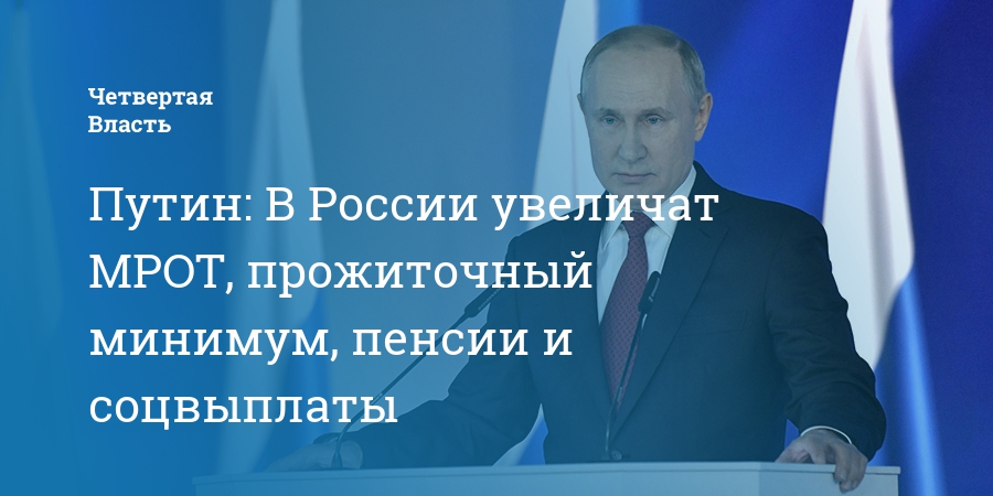 Путин: В России увеличат МРОТ, прожиточный минимум, пенсии и соцвыплаты