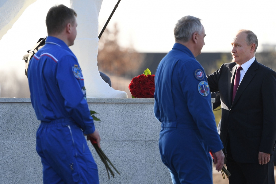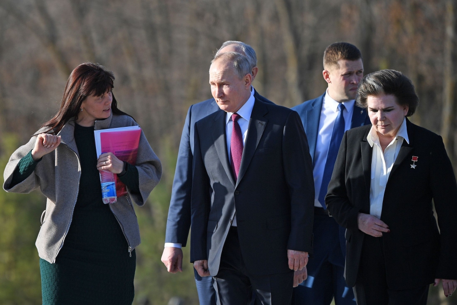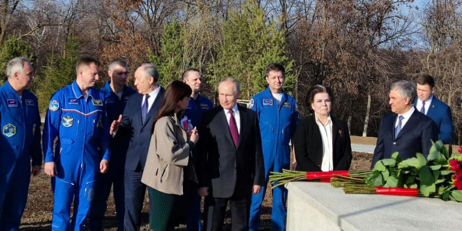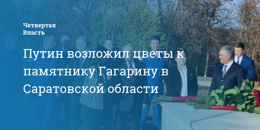 Указано, что Владимир Путин возложил цветы к памятнику Юрию Гагарину, расположенном на месте приземления первого космонавта в Парке покорителей космоса. Его сопровождают председатель Госдумы Вячеслав Володин, первая женщина-космонавт Валентина Терешкова, губернатор Валерий Радаев и Инна Буйкевич, заведующая Народным музеем ППК СГТУ имени Ю. А. Гагарина.