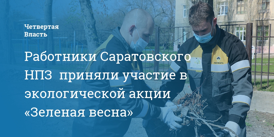 Работники Саратовского НПЗ (входит в нефтеперерабатывающий комплекс НК «Роснефть») приняли участие во всероссийской экологической акции «Зеленая весна», в ходе которой убраны территории, прилегающие к периметру предприятия. В общей сложности от бытового мусора и валежника было очищено 11,5 тыс. кв. метров территорий, собрано 13 куб. м мусора.