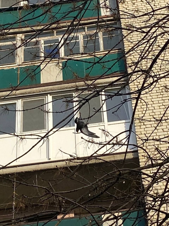 Волонтеры рассказали, что к ним обратилась саратовчанка с просьбой снять птицу с дерева. Как оказалось, голубь «запутался в веревочках и повис на дереве на уровне 4 этажа».