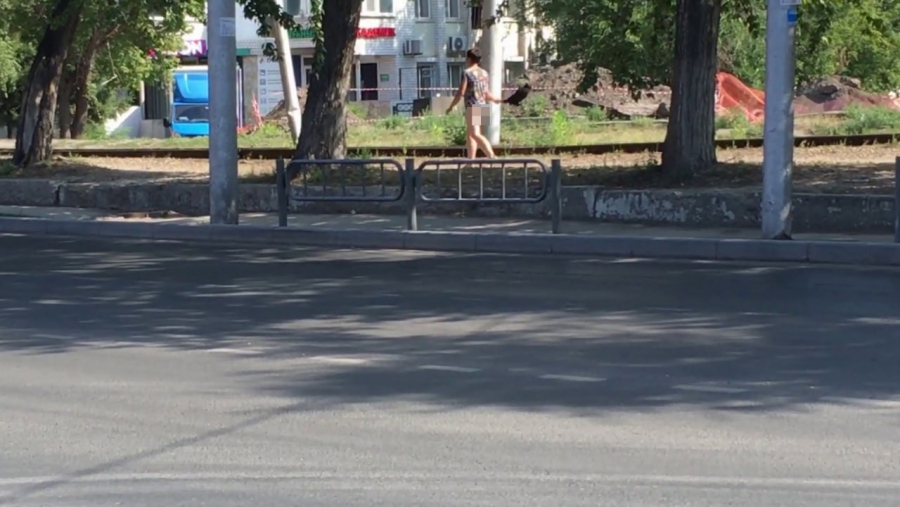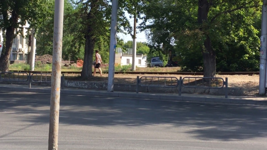 На кадрах видно, как гражданин босиком прогуливается вдоль трамвайных путей, неподалеку от остановки «Стрелка». Видимо, ему стало настолько жарко (температура воздуха достигает +30 градусов и выше), что он стянул с себя шорты вместе с нижним бельем. Затем горожанин пошел вдоль дороги, весело размахивая снятыми трусами. Одновременно с эти он что-то кричал в адрес машин и прохожих.